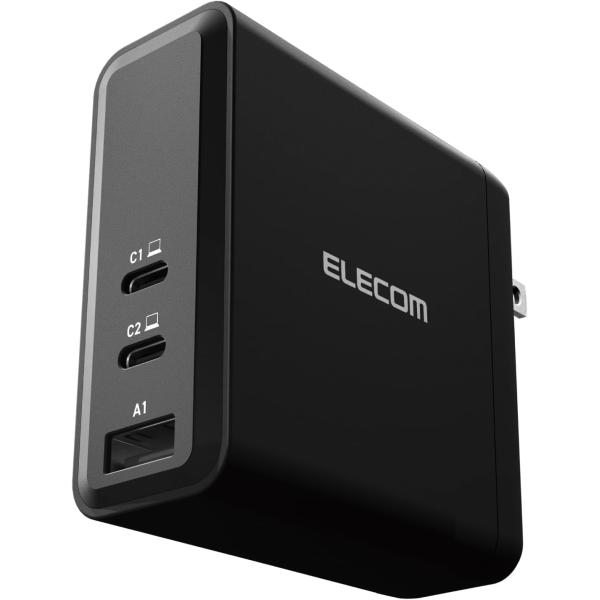 - [エレコム USB Power Delivery EPR規格140W対応AC充電器(C×2+A×1) ブラック ACDC-PD96140BK [ACDCPD96140BK]] の商品説明●USB Power Delivery EPR最大140W(28V/5A) 出力対応USB AC充電器です。16インチMacBook Proを30分でゼロから50%まで高速充電可能です。 ※単ポート接続時、16インチMacBook Proに同梱のUSB-C - MagSafe 3ケーブルを使用の場合●16インチMacBook Proに同梱の140W電源アダプターの代替として使用可能。USB Type-Cポート×2、USB-Aポート搭載で幅広い機器の充電に対応しています。出張・ハイブリッドワーク時の持ち運び用に適しています。●2ポート接続時:USB Type-Cポート×2を使用の際は、それぞれ65Wの同時出力が可能。ノートパソコンを2台同時に充電できます。●2ポート接続時:USB Type-CポートとUSB-Aポートを使用の際は、USB Type-Cポートで100W、USB-Aポートで12Wの出力が可能。ノートパソコンとスマートフォンやスマートウォッチ、ワイヤレスイヤホンなどを同時に充電できます。●3ポート接続時:USB Type-Cポート×2、USB-Aポート×1の3ポートを同時に使用する際は、60W+60W+12Wの出力が可能。ノートパソコン・スマートフォン・タブレットなどを3台同時に充電できます。●※本製品に接続するケーブルは、ご使用になる機器に合わせて別途ご用意ください。●※60〜100W出力には100Wまでの充電に対応したケーブルを、100W以上の出力にはUSB Power Delivery EPR規格に対応した240W対応ケーブルをお使いください。●GaN II Plus(窒化ガリウム)を採用し、高出力ながらコンパクトサイズを実現。16インチMacBook Proに同梱の140W ACアダプターと比較して約20%小型化しています。●プラグ部分を折り畳むことができるため、バッグの中でもスペースを取りません。幅約30mmとスリムでACタップの隣のコンセントにも干渉しにくく、ビジネスでの外出やリモートワーク、出張、旅行など持ち運びにも便利です。●USB Power Delivery規格、PPS規格、EPR規格に対応。機器に応じて電圧、電流が変化するため、iPhoneなどのスマートフォンやiPadなどのタブレットはもちろん、高性能なWindowsノートパソコンまで幅広く充電できます。●※USB Power Deliveryとは、アダプターと接続機器間で情報をやり取りすることで、その機器間における最適な電力を選択し、高速充電を実現するUSB規格です。PPS(Programmable Power Supply)とは、0.02V単位で電圧を調整し、最適な電力で効率的に供給することができるUSB Power Deliveryのオプション規格です。●※USB Power Delivery EPR(Extended Power Range)は、USB Power Delivery 3.1より追加された、接続機器の高速充電や大きな電力を必要とする機器の給電に適したUSB規格です。●本製品は、USB-IFのテストと同等のテストを当社独自で実施しています。高い安全性が保たれており、USB Power Delivery対応機器でご使用いただけます。●Thermal Protectionを搭載し、製品温度の上昇を24時間監視・制御。自動で出力をコントロールし、お使いの機器を守ります。●耐トラッキング性の要求事項(PSE:電気用品安全法)を満たしたコンセントプラグを採用しています。●※USB Type-C and USB-C are trademarks of USB Implementers Forum.●※複数ポート使用時は1ポートあたりの出力が低下するため、ご使用の機器によっては充電できない場合があります。●エレコム社環境認定基準を1つ以上満たし、『THINK ECOLOGY』マークを表示した製品です。●廃棄物削減に取り組み、製品に同梱する取扱説明書等をペーパーレス化した製品です。●環境保全に取り組み、製品の包装容器におけるプラスチック重量を、社内基準製品より20%以上削減した製品です。●環境保全に取り組み、製品の包装容器が紙・ダンボール・ポリ袋のみで構成されている製品です。●環境保全に取り組み、製品本体の主たる構成部品や構成要素の原料に占めるリサイクル原料の割合が10%を超えている製品です。[エレコム USB Power Delivery EPR規格140W対応AC充電器(C×2+A×1) ブラック ACDC-PD96140BK [ACDCPD96140BK]]のスペック●対応機種:各USB Type-C(TM)ポートからUSB Power DeliveryおよびPPS 100W、USB Power Delivery EPR 140W、またはUSB-Aポートから12Wの規格内で充電可能なノートパソコン、スマートフォンなどの機器。2ポート以上同時接続時、合計最大132Wまでの出力で充電・給電可能な機器とその組合せ。●コネクター形状:USB Type-Cポート×2、USB-Aポート×1●定格入力電圧:AC100〜240V、50/60Hz●定格入力電流:2.0A●定格出力電力(単独接続時):USB Type-C1/USB Type-C2ポート:最大出力140W、PPS最大出力100W、USB-A1ポート:最大出力12W●定格出力電力(2ポート同時接続時(1)):USB Type-C1+USB Type-C2ポート:合計最大出力130W、USB Type-C1/C2ポート最大出力65W、PPS最大出力65W●定格出力電力(2ポート同時接続時(2)):USB Type-C1/C2+USB-A1 ポート:合計最大出力112W、USB Type-C1/C2ポート最大出力100W、PPS最大出力100W、USB-A1ポート最大出力12W●定格出力電力(3ポート同時接続時(1)):合計最大出力132W、USB Type-C1/C2ポート最大出力60W、PPS最大出力60W、USB-A1ポート最大出力12W●定格出力電圧(単独接続時):USB Type-C1ポート/USB Type-C2ポート:5V/9V/12V/15V/20V/28V、PPS出力5〜21V、USB-A1ポート:5V●定格