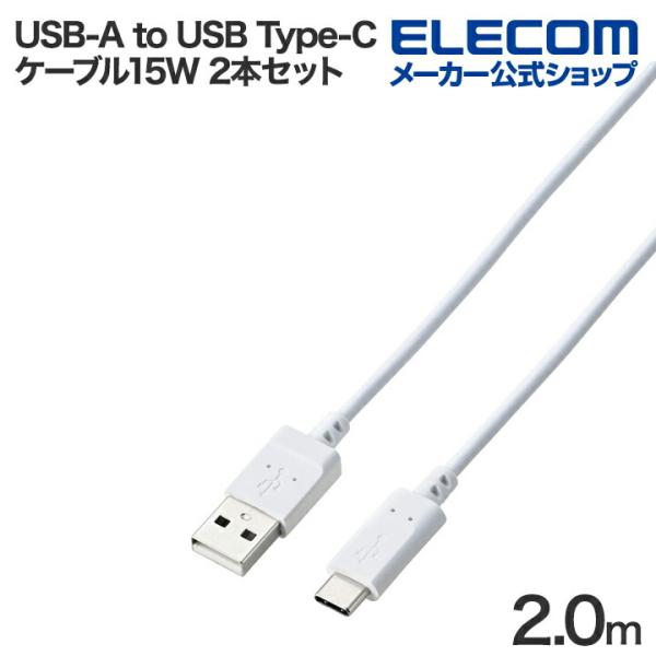 エレコム USB-A to USB Type-Cケーブル USB2.0 15W スタンダード タイプC 2本セット 2.0m ホワイト MPA-ACECTW20WH