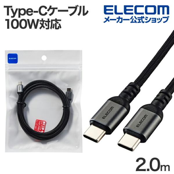 エレコム USB Type-C - USB Type-Cケーブル USB2.0 ナイロン USB Power Delivery対応 100W 2.0m ブラック MPA-CCECAN20BK