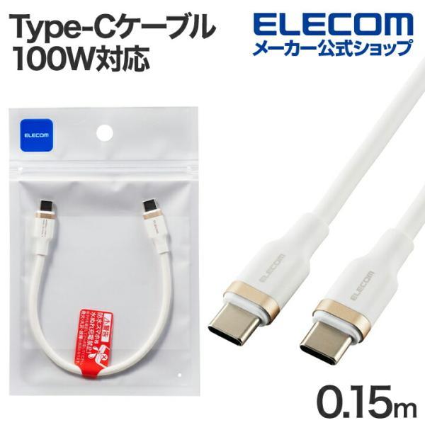 エレコム USB Type-C - USB Type-Cケーブル USB2.0 なめらか USB Power Delivery対応 100W 0.15m ホワイト MPA-CCECSS015WH