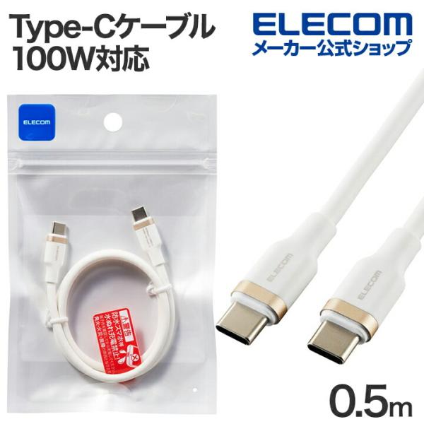 エレコム USB Type-C - USB Type-Cケーブル USB2.0 なめらか USB Power Delivery対応 100W 0.5m ホワイト MPA-CCECSS05WH