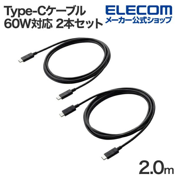 エレコム USB Type-C - USB Type-Cケーブル USB2.0 スタンダード 2本セット USB Power Delivery対応 60W 2.0m ブラック MPA-CCECTW20BK