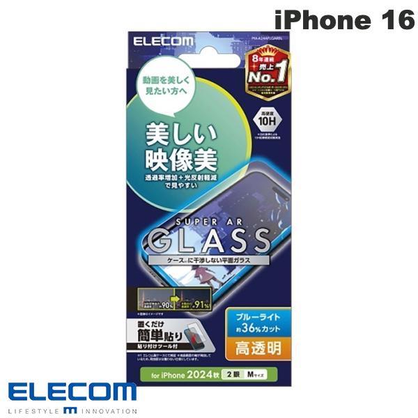 エレコム ELECOM iPhone 16 / 15 ガラスフィルム エッチングAR加工 動画映え 高透明 ブルーライトカット 0.25mm PM-A24AFLGARBL
