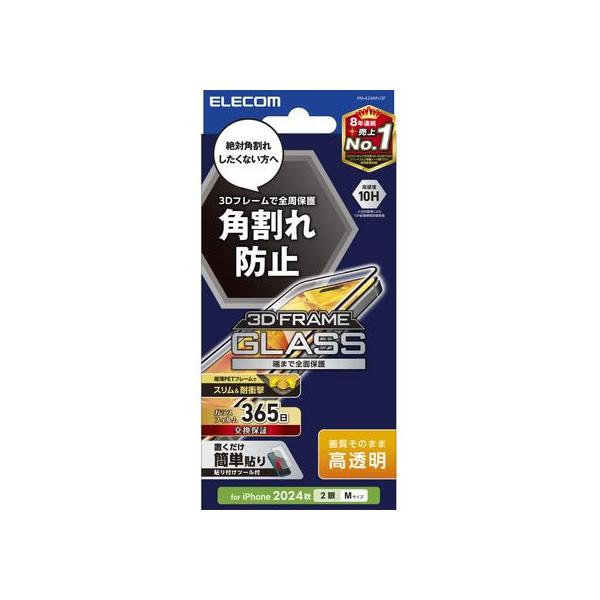 【お取り寄せ】エレコム iPhone16ガラスフィルム クリア フレーム ブラック PM-A24AFLGF スマートフォン用液晶保護フィルム スマートフォン関連品 スマホ