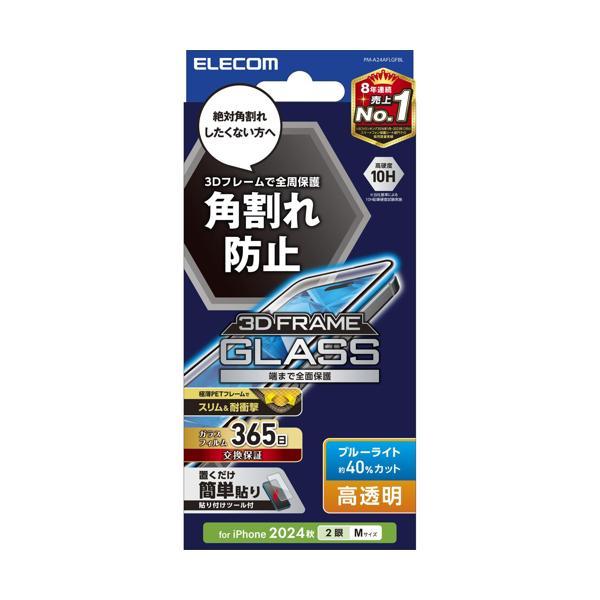 エレコム iPhone 16 ガラスフィルム 強化ガラス 硬度10H ガイド枠付き iPhone 15対応 ブラック PM-A24AFLGFBL