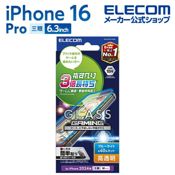 iPhone16 Pro 用 ガラスフィルム ゲーミング 高透明 ブルーライトカット 3眼 6.3 スマホ ガラス フィルム 液晶 保護フィルム PM-A24CFLGGEBL エレコム 在庫処分