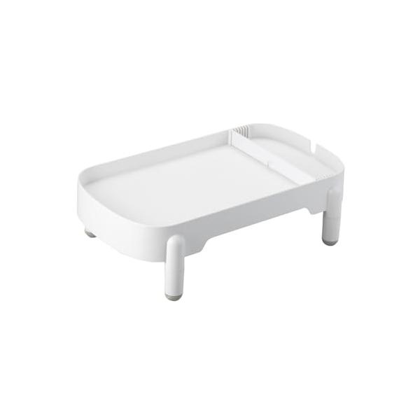 - [エレコム 給餌・給水用スタンド ホワイト PET-ST01WH [PETST01WH]] の商品説明●ワンちゃん・ネコちゃんの自然な姿勢をサポート。無理のない高さで食事や水分補給をもっと快適にする、給餌・給水用スタンドです。●ごはんの位置が低いと、ワンちゃん・ネコちゃんの首や足腰に負担がかかり、吐き戻し・誤嚥が起こることも。フードボウルの位置を高くすることで食道を平行に近づけ、飲み込みが楽になるようにサポートします。●フードボウルを床に直接置かずに済むため、周囲のお掃除がスムーズに。ごはんやお水へのホコリや被毛の混入も防げます。●ペットの成長や体高に合わせて3段階の高さ調整が可能。高さ5.4cmから15.0cmまで設定できるため、超小型から大型まで幅広いワンちゃん・ネコちゃんにお使いいただけます。●幅19.5cm×奥行36.5cmまで設置可能なワイドタイプ。フードボウルはもちろん、自動給餌器・給水器の設置も可能です。※事前にお持ちの給餌器・給水器などのサイズが設置可能サイズ以内であることを必ずご確認ください。●ケーブルを裏から出せる配線穴付きで、自動給餌器・給水器もすっきり配線できます。●工具不要で組み立て簡単。高さ調整もジョイントパーツを付け替えるだけですぐに行えます。●※画像は使用イメージです。[エレコム 給餌・給水用スタンド ホワイト PET-ST01WH [PETST01WH]]のスペック●対応サイズ:W19.5×D36.5cm以内の給餌器、給水器またはフードボウルなど給餌・給水の食器●耐荷重:約10kg●高さ調整:1段目/高さ約5.4cm、2段目/高さ約9.1cm、3段目/高さ約15.0mm●寸法:約W23.9×H7.8×D38.7cm ※保護キャップ装着後の本体。ジョイントパーツは含みません。●質量:約520g ※2段目の高さ時。保護キャップ・ジョイントパーツ(小)・固定パーツを含む●セット内容:本体×1、固定パネル×1、ジョイントパーツ(大)×4、ジョイントパーツ(小)×4、保護キャップ×4○返品不可対象商品