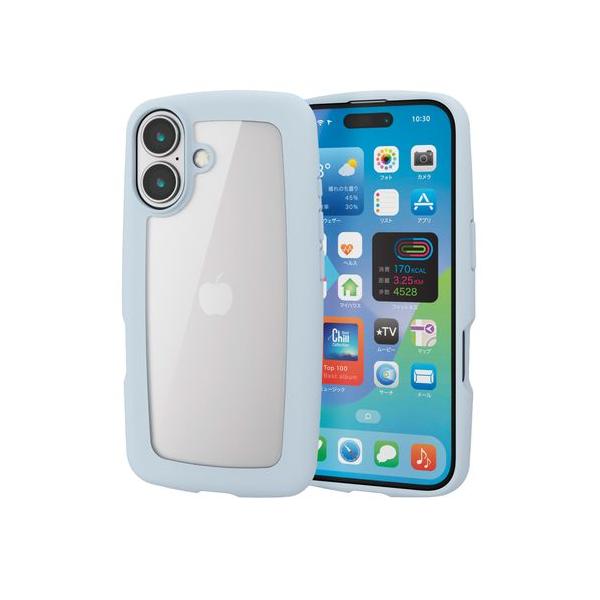 エレコム iPhone 16 ケース ハイブリッド 衝撃吸収 軽量 薄型 カメラ周リ保護 ストラップホール付 硬度5H &me ライトブルー メーカー在庫品