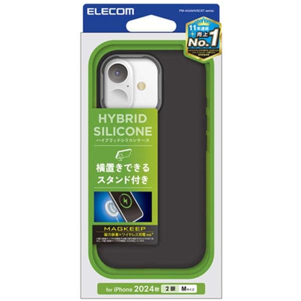 エレコム iPhone 16 ハイブリッドケース シリコン MAGKEEP スタンド PM-A24AHVSCSTBK