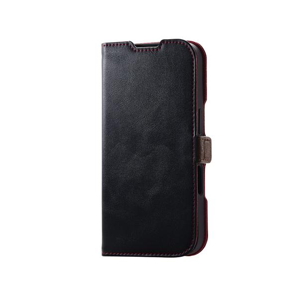 エレコム PM-A24APLFYBK iPhone 16 ソフトレザーケース 磁石付 耐衝撃 ステッチ