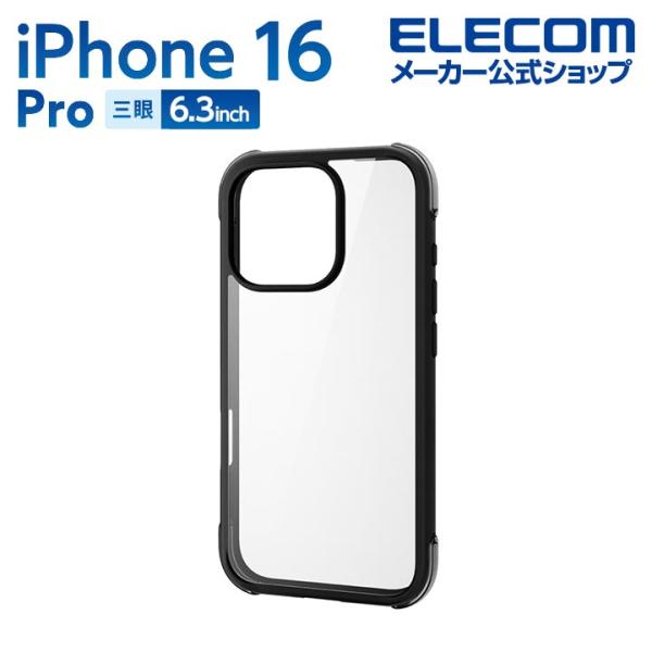 iPhone16 Pro 用 MUBRAIN ハイブリッドケース エアバッグ ハイブリッド ケース カバー ブラック PM-A24CHVAIRBK エレコム 在庫処分