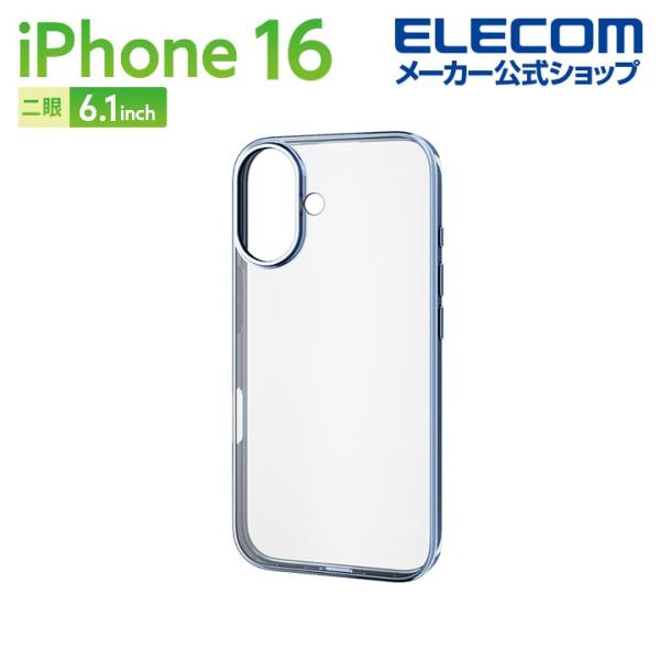 iPhone16 用 ソフトケース サイドメッキ 2眼 6.1 スマホ ソフト ケース カバー メタリックペールブルー PM-A24AUCTMBU エレコム 在庫処分