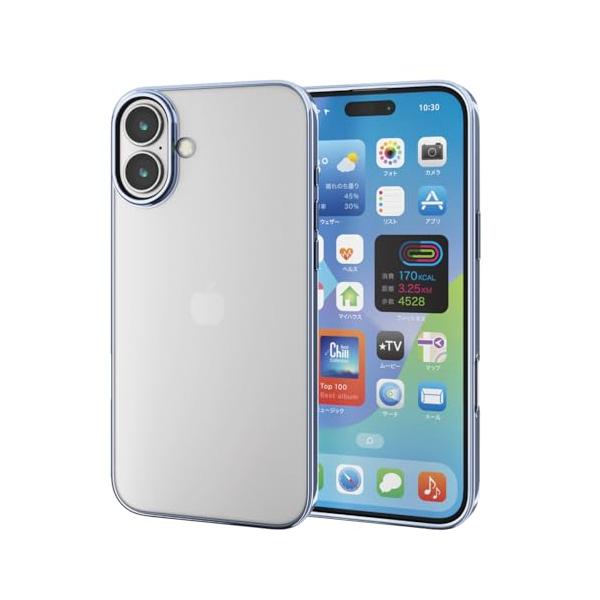エレコム iPhone 16 Plus ケース クリア 薄型 メタリック フレーム ソフト TPU ワイヤレス充電対応 メタリックペールブルー