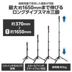 - 最大約1650mmまで伸びるロングタイプのスマホ三脚です。 一眼レフカメラなど重い機器も安心して取り付け可能。1/4インチネジを採用し、さまざまなアクセサリーが使用できます。 ※耐荷重:約5kg ※縦長の特殊カメラや超望遠のレンズなどを装着する場合、本体機器や付属アクセサリーの重量で倒れるおそれがあります。取り扱いにはお気を付けください。 4.0インチ〜6.7インチのスマートフォンに対応した、取り外し可能なスマホホルダー付きです。 ホルダー部にはスマートフォンのズレを防ぐ、滑り止めのクッションが付いています。 レバーを開閉するだけでロック可能。高さ調節が簡単にできます。 雲台の角度を180度調整できるので、さまざまなアングルでの撮影が可能です。 脚部分は滑りにくいゴム素材で、安定して設置できます。 コンパクトに収納可能。かばんに入れて持ち運ぶのにも便利です。 自社環境認定基準を1つ以上満たし、『THINK ECOLOGY』マークを表示した製品です。 環境保全に取り組み、製品の包装容器が紙・ダンボール・ポリ袋のみで構成されている製品です。