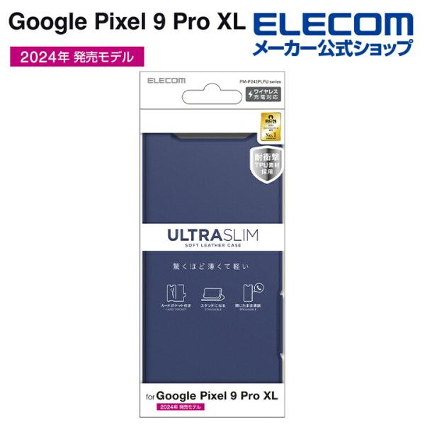 Google Pixel 9 Pro XL 用ソフトレザーケース 薄型 磁石付 カバー ネイビー PM-P243PLFUNV エレコム 在庫処分