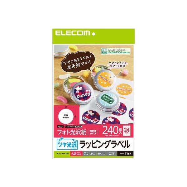 - お菓子や雑貨のラッピング、結婚式や誕生日パーティーの招待状などに使えるオリジナルラベルシールを自分でデザイン・印刷して作成できます。艶のある光沢紙を採用。色鮮やかに印刷が可能です。丸型にカットされていて、台紙から剥がしやすいので効率よくラベル貼り作業を行えます。0.13mmのしっかりコシがあるラベルの厚みで、商品のパッケージシールやビンの表示ラベルなど幅広い用途に使えます。無料でダウンロードできるエレコムのラベル作成ソフト「らくちんプリント3.0」を使って、簡単にデザイン・印刷が可能です。【 仕様 】 ■用紙サイズ:幅210mm×高さ297mm ※A4サイズ ■一面サイズ:40mm×40mm(丸型) ■ラベル枚数:10シート(240片) ■用紙タイプ:フォト光沢紙 インクジェットプリンタ専用タイプ ■カラー:ホワイト ■紙厚:0.13mm ■坪量:174g/m2 ■テストプリント用紙:テストプリント用紙1枚入り ■お探しNo.:T164 ■その他:面付24面 【 説明 】 ■お菓子や雑貨のラッピング、結婚式や誕生日パーティーの招待状などに使えるオリジナルラベルシールを自分でデザイン・印刷して作成できます。 ■艶のある光沢紙を採用。色鮮やかに印刷が可能です。 ■丸型にカットされていて、台紙から剥がしやすいので効率よくラベル貼り作業を行えます。 ■0.13mmのしっかりコシがあるラベルの厚みで、商品のパッケージシールやビンの表示ラベルなど幅広い用途に使えます。 ■無料でダウンロードできるエレコムのラベル作成ソフト「らくちんプリント3.0」を使って、簡単にデザイン・印刷が可能です。 ■インクジェットプリンタ顔料と染料に対応しています。 ■自社環境認定基準を1つ以上満たし、『THINK ECOLOGY』マークを表示した製品です。 ■環境保全に取り組み、製品の包装容器が紙・ダンボール・ポリ袋のみで構成されている製品です。