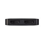 - ■商品内容■DisplayPort(TM)コネクター搭載のディスプレイなどに映像を出力できる変換アダプターです。USB Type-C(TM)ポート搭載パソコンなどの映像信号を、DisplayPortコネクター搭載ディスプレイなどに最大2台まで映像を出力することができ、画面複製と画面拡張に対応しています。 ■※DisplayPortポートからUSB Type-Cプラグへの変換はできません。 ■※音声出力に対応しています。 ■※映像が正しく表示されない場合は、接続先のディスプレイなどの電源ON/OFFや各接続コネクターの抜き挿しをお試しください。 ■※環境、機器により正常に動作しない場合があります。 ■※すべての機器での動作を保証するものではありません。 ■※本製品で映像出力を行う際は、出力機器がDisplayPort Alt Mode対応であることをご確認ください。 ■※対応機器(DisplayPortケーブルなど)は同梱していません。別途ご購入またはご用意ください。 ■接続した複数台のディスプレイを1つの画面として表示する画面拡張と、出力側のディスプレイと同じ画面を表示する画面複製に対応しています。 ■※出力側(パソコンなど)と最大2台までのディスプレイなどで映像出力が可能です。その場合、最大3画面表示となります。 ■※ディスプレイ1台接続時は最大8K(7680×4320px)/30Hz、ディスプレイ2台接続時はそれぞれ最大4K(3840×2160px)/60Hzに対応しています。 ■※接続する機器が、画面複製・画面拡張に対応している必要があります。 ■※スマートフォン・タブレットの機種によっては画面拡張に対応していない場合があります。 ■最大8K(7680×4320px)/30Hzの解像度に対応しています。 ■著作権保護技術のHDCP2.2/1.4に対応しています。 ■当製品はIC搭載のアクティブタイプです。 ■アダプターの本体内部には、シールド効果が高く、外部ノイズの影響を受けにくい金属シェル構造を採用しています。 ■外部ノイズの干渉を受けにくい3重シールドケーブルを採用しています。 ■サビなどに強く信号劣化を抑える金メッキピンを採用しています。 ■ドライバー不要で、機器同士を接続するだけで使用可能です。 ■※USB Type-C and USB-C are trademarks of USB Implementers Forum ■EUの「RoHS指令(電気・電子機器に対する特定有害物質の使用制限)」に準拠(10物質)した、環境にやさしい製品です。 ■自社環境認定基準を1つ以上満たし、『THINK ECOLOGY』マークを表示した製品です。 ■環境保全に取り組み、製品の包装容器におけるプラスチック重量を、社内基準製品より20%以上削減した製品です。 ■環境保全に取り組み、製品の包装容器が紙・ダンボール・ポリ袋のみで構成されている製品です。■商品スペック■コネクター形状1 : USB Type-C(TM)プラグ■コネクター形状2 : DisplayPort(TM)ポート×2■対応機器 : USB Type-Cプラグ側 : DisplayPort(TM) Alt Mode対応USB Type-Cポート搭載のパソコンなど■対応機器 : DisplayPort(TM)ポート側 : DisplayPort(TM)ケーブル/ディスプレイ・プロジェクターなど■対応解像度 : ディスプレイ1台接続時 : 最大8K(7680×4320px)/30Hz、ディスプレイ2台接続時 : 最大4K(3840×2160px)/60Hz■ケーブルタイプ : ノーマルタイプ■ケーブル長 : 約12cm ※コネクター含まず■外形寸法 : 幅約55mm×厚み約12mm×高さ約50mm(アダプター部分)■カラー : ブラック■パッケージ形態 : 紙箱■環境配慮事項 : EU RoHS指令準拠(10物質)、THINK ECOLOGYマーク■送料・配送についての注意事項●本商品の出荷目安は【4 - 7営業日 ※土日・祝除く】となります。●お取り寄せ商品のため、稀にご注文入れ違い等により欠品・遅延となる場合がございます。●本商品は仕入元より配送となるため、沖縄・離島への配送はできません。[ AD-CDP2BK2 ]