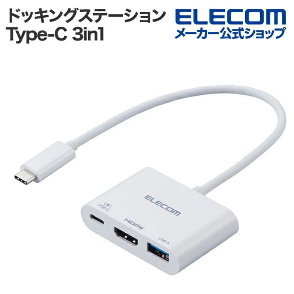 エレコム ドッキングステーション USB Type-C 3in1 パワーデリバリー ホワイト DST-W12