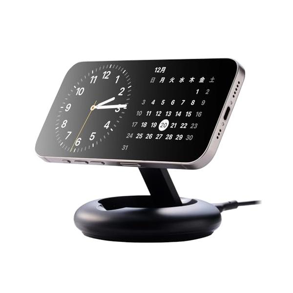 ・マグネットで固定するだけでQi2対応スマートフォンを高速充電できる、Qi2規格ワイヤレス充電スタンドです。最大出力15WでiPhoneを充電できます。