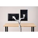 モニターの位置を自由に調整でき、デスクのスペースを有効活用!13〜32インチサイズのモニターを2台設置できる、支柱付きのガススプリング式のデュアルモニターアームです。