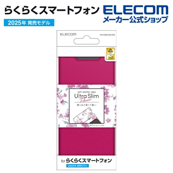 らくらくスマートフォン 用 ソフトレザーケース 薄型 磁石付 F-53E ソフトレザー ケース カバー 手帳型 超軽量 ピンク PM-F244PLFUJPND エレコム 在庫処分