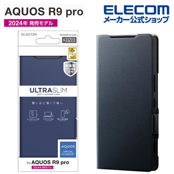 AQUOS R9 pro 用 ソフトレザーケース 薄型 磁石付 SH-54E ソフト ケース カバー 手帳型 UltraSlim ネイビー PM-S245PLFUNV エレコム 在庫処分