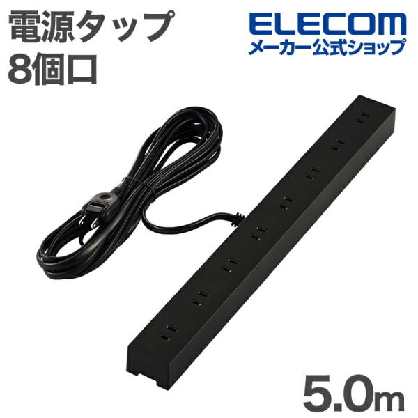 エレコム 電源タップ VESA取付タップ 8個口 5m 雷サージ付き ホコリシャッター付き ブラック ECT-3350BK