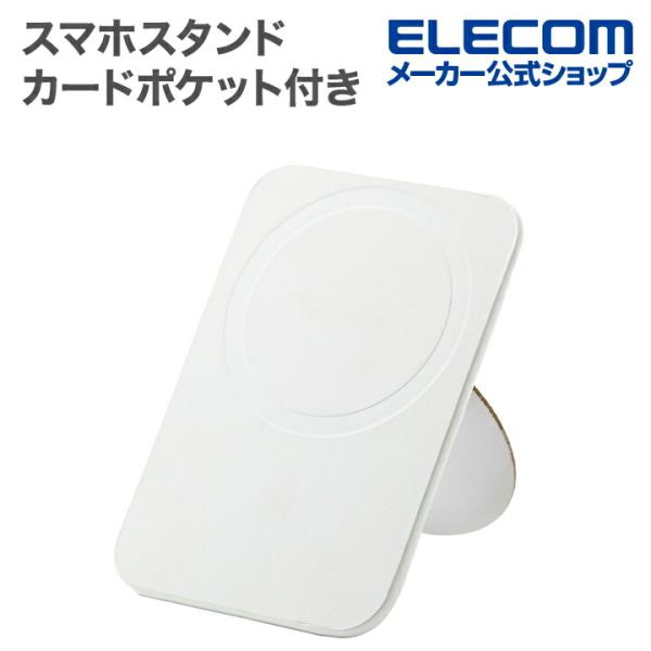 スマホスタンド カードポケット付き スマホ 用 マグネット 薄型 MagSafe対応 カードポケット付き ホワイト P-DSMSTCCWH エレコム 在庫処分