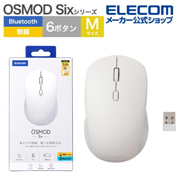 エレコム ワイヤレスマウス OSMOD Six 無線 Bluetooth 静音マウス ワイヤレス マウス 6ボタン / Mサイズ マルチ接続 乾電池式 静音 ホワイト M-MY30MBSWH