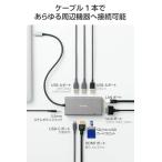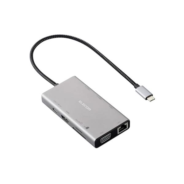 - ■映像も音声も、10ポートをこの1台に。薄型ノートパソコンの機能を拡張する、USB Type-C(TM)接続ドッキングステーションです。最大3画面で同時に高画質のコンテンツを楽しめる拡張・ミラーリング機能を搭載しています。■USB Type-C(TM)ポート搭載パソコンに10ポートを増設可能。さまざまなデバイスを1本のケーブルで一括接続できます。 ■安定接続のための独自設計。送受信信号の認証試験にもとづく計測のもと、パソコンとドッキングステーション間で通信するデータ品質を安定させる設計に。接続デバイス間で生じやすい相性問題を最小限に抑え、スムーズな操作体験を提供します。 ■パソコンから外部ディスプレイへ映像出力ができるHDMIポートを搭載。オフィスワークや資料作成に適した解像度最大4K/30Hzに対応。ディスプレイへ拡張、ミラーリングすることで作業効率を向上します。 ■4K対応HDMIポートと1080p対応VGAポートを使用して、同時に2画面へ出力することが可能です。 ■※出力先のディスプレイでそれぞれ異なる映像を映すことはできません。 ■USB Type-C対応AC充電器を接続してパソコン本体の充電が可能。USB Power Delivery 最大100Wにてデバイス・本体へ給電できます。 ■※製品本体にて10Wを消費するため、実際の出力は最大90Wとなります。90Wで給電が必要な場合は、100W出力のAC充電器をご用意ください。 ■USB 5Gbps(USB3.2(Gen1))に対応したUSB-Aポート×2、USB2.0対応のUSB-Aポート×1を搭載しています。USBメモリなどでのデータの読み書きができます。 ■※本製品はUSBポートを増設するための製品です。データ転送に使用するUSBポートでスマートフォン・タブレットを充電することはおすすめできません。 ■SDXC/SDHCに対応したSDカードスロットとmicroSDカードスロットを搭載しています。画像・動画などのデータ移行にも便利です。2つのカードスロットは同時に利用できます。 ■φ3.5mmステレオミニジャックで、イヤホンやヘッドホンを接続できます。Web会議やオンライン通話などもスムーズです。 ■インターネットの有線接続が可能なLANポートを搭載しています。 ■パソコン本体との接続は、最大10Gbps(理論値)の高速データ転送を実現するUSB 10Gbps(USB3.2(Gen2))に対応しています。 ■放熱性と耐ノイズ性に優れ、オフィスアイテムにも馴染むシックなアルミ筺体を使用しています。 ■ケーブルは紛失の心配がない直付けタイプです。タブレットPC/2in1パソコンでもゆったり接続できるケーブル長約25cmです。 ■※法人で導入を検討される場合は、ご購入前にお客様の環境での検証をおすすめいたします。 ■※接続するUSB Type-Cポート搭載機器の仕様の違いより、一部機能をご利用いただけない場合があります。 ■※パソコン充電用のUSB Type-C対応AC充電器は付属していません。別途ご用意ください。 ■※USB Type-Cポートからの充電に対応しないパソコンの場合、本製品のUSB Type-Cポート経由での本体充電はできません。充電を行う際は、パソコンがUSB Power Deliveryに対応していることを確認してください。 ■※USB Type-Cポートからの映像出力に対応しないパソコンの場合、本製品の映像出力ポートは動作しません。映像出力を行う際は機器がDisplayPort(TM) Alt Modeに対応していることを確認してください。 ■※本製品はOS起動前のシステム画面やBIOS画面では動作しません。 ■※本製品はパソコン本体のUSB Type-Cポートに直接接続してください。USBハブや増設ボードのUSB Type-Cポートに接続した場合、本製品をご利用いただけません。 ■※USB Type-C and USB-C are trademarks of USB Implementers Forum. ■自社環境認定基準を1つ以上満たし、『THINK ECOLOGY』マークを表示した製品です。 ■環境保全に取り組み、製品の包装容器におけるプラスチック重量を、社内基準製品より20%以上削減した製品です。 ■環境保全に取り組み、製品の包装容器が紙・ダンボール・ポリ袋のみで構成されている製品です。■対応OS(Windows):Windows 11/10■対応OS(mac):macOS Sonoma 14/macOS Ventura 13/macOS Monterey 12■対応OS(iPadOS):iPadOS 17/16■対応OS 備考:※各OSの最新バージョンへのアップデートや、サービスパックのインストールが必要になる場合があります。■コネクタ仕様(アップストリーム):USB Type-C(TM)プラグ<USB 10Gbps(USB3.2(Gen2))>、USB Power Delivery対応(最大入力100W/最大出力90W)、DisplayPort(TM) Alt mode(USB2.0接続時はUSB2.0互換で動作(USB2.0接続時は映像出力非対応))■USBポート(ダウンストリーム):1:USB Type-Cポート×1 ※充電専用USB Power Deliveryポート■USBポート(ダウンストリーム):2:USB-Aポート<USB 5Gbps(USB3.2(Gen1))>×2 ※映像出力非対応■USBポート(ダウンストリーム):3:USB-Aポート<USB 480Mbps(USB2.0)>×1■映像出力ポート(ダウンストリーム):1:HDMI×1<対応解像度:最大4K/30Hz> ※入力信号は標準のDisplayPort1.2に対応している必要があります。■映像出力ポート(ダウンストリーム):2:VGA×1<対応解像度:最大1920×1080/60Hz> ※HDMIポートとVGAポート、同時接続の場合、両ポートの最大解像度は1920×1080/60Hzとなります。■LANポート(ダウンストリーム):RJ-