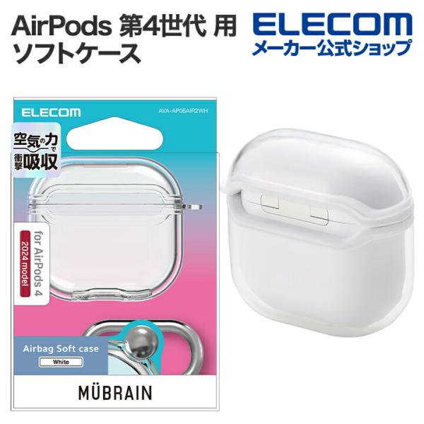 AirPods 第4世代 用 MUBRAIN ソフトケース エアバッグ エアポッズ ソフト ケース カバー ホワイト AVA-AP06AIR2WH エレコム 在庫処分