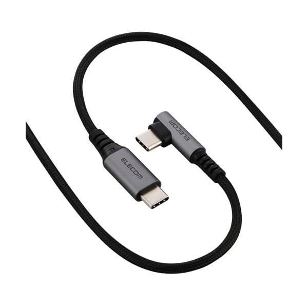 エレコム USB Type-C ケーブル 1m (USB-C to USB-C) L字 60W PD対応 ナイロンメッシュ USB-IF認証 ブ