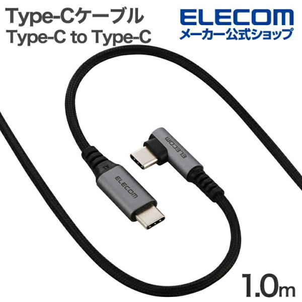 エレコム Type-Cケーブル Type-C to Type-C 1.0m USB Power Delivery対応 最大60W USB2.0 片側L字 ブラック MPA-CCECL10BK