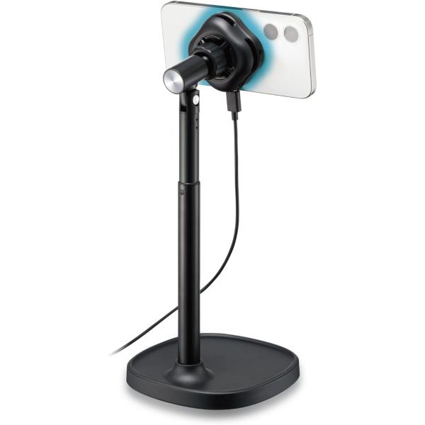 - ■ 商品情報・ゲームや動画撮影中に端末を長時間使用した際の熱上昇を防ぐ、ペルチェ式のスマホクーラーです。 ・MagSafe対応iPhoneなどのスマートフォンに、マグネットで簡単に着脱可能です。 ・付属のメタルプレートをスマホケースや端末に貼り付けることで、MagSafe非対応の機種でも使用可能になります。 ・※使用するケースの材質、厚みによっては対応できない場合がありますのでご了承ください。 ・高い冷却能力を持ち、最高約-20℃の冷却が可能です。 ※当社試験結果による ・卓上に置けるスタンド付きで、長時間の動画撮影や視聴にもおすすめです。 ・スタンドや土台部分は約90度まで角度を変えられ、高さも約228mmから約340mmまで伸縮可能。視線や姿勢に合わせて快適に使用できます。 ・スマホクーラーとスタンドは、取り外し可能。用途に応じて、自由に使い分けられます。 ・約22.6dBの静音設計なので、使用中もファンの音が気になりません。 ・本製品は異常温度感知センサーを搭載し、温度を常に監視。万が一、高温になった場合でも自動で停止し、安全に使用できる安心設計です。 ・電源ケーブルを接続して使用するため、充電を気にせず長時間安心して使用できます。 ・※USB AC充電器は付属していないため、5V/2A以上のUSB AC充電器を別途ご用意ください。 ・※USB Type-C and USB-C are trademarks of USB Implementers Forum ・自社環境認定基準を1つ以上満たし、『THINK ECOLOGY』マークを表示した製品です。 ・環境保全に取り組み、製品の包装容器が紙・ダンボール・ポリ袋のみで構成されている製品です。■ 商品詳細・冷却方式:ペルチェ式・冷却能力:最高約-20℃ ※当社試験結果による・騒音特性:約22.6dB・対応機種:MagSafe対応iPhone/磁力で装着できない機種は、付属のメタルプレートを機器本体の背面に貼り付けることで使用できます。 ※貼り付け面の形状や素材によっては、吸着が弱まるため使用できない場合があります。・電源:USB(5V/2A以上) ※USBアダプターは付属していません。・定格電圧:5V・消費電力:約10W・回転数:約6000rpm・最大風量:約4.8CFM・ファンの回転直径:約35mm・外形寸法:スマホクーラー:外寸W約67mm×D約67mm×H約23mm(突起部含まず)、スタンド土台:直径約155mm・スタンド土台からボールジョイント最上部まで:高さ約228〜約340mm・質量:約450g(ケーブル、スタンド含む)・カラー:ブラック・付属品:USB-A - USB Type-C(TM)ケーブル(約1.2m ※コネクターを除く)、メタルプレート(※メタルプレートの装着により、冷却効果が下がる可能性があります。)・保証期間:1年間■ ご注意 ■・ ご注文のタイミングにより、納期がかかる、又は完売などの場合もございます。・ 商品の情報/詳細、画像について保証は致しかねます。・ 画像はイメージです。商品以外が含まれる、又は商品と異なる場合があります。・ 必ずメーカーホームページなど合わせてご確認ください。・ ご注文確定後のキャンセル・返品・交換は出来かねます。・ 北海道、沖縄、その他離島は配送致しかねます。・ 型番 : P-CLPL02ARMBK・ JAN : 4549550352598-ds