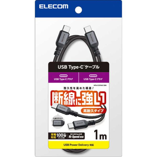 エレコム ELECOM USB Type-C ケーブル USB-C to USB-C 1m PD 100W 急速充電 断線に強い 高耐久 ナイロンメッシュ ブラック MPA-CC5PAN10BK