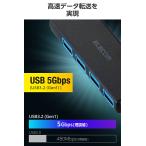 USB-Aポートを増やしてデスクまわりをすっきり。4つのUSB-Aポートを搭載した、USB-A接続のUSBハブです。USB 5Gbps(USB3.2(Gen1))で高速データ転送が可能です。機能を絞った薄型設計で、持ち運びにも便利です。