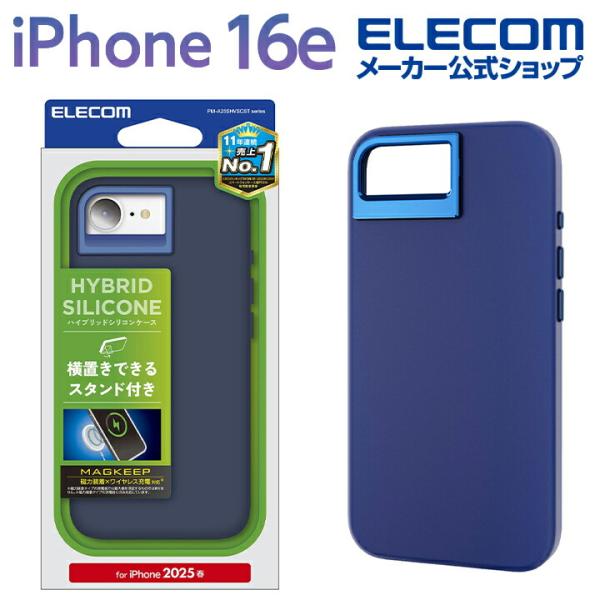 iPhone 16e 用 ハイブリッドシリコンケース MAGKEEP スタンド ハイブリッド シリコン ケース カバー シリコン ネイビー PM-A25SHVSCSTNV エレコム 在庫処分