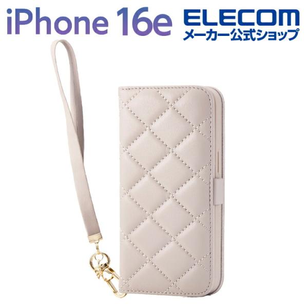 iPhone 16e 用 &me ソフトレザーケース キルテイング 磁石付 ソフトレザー ケース カバー 手帳型 グレージュ PM-A25SPLFJM4GB エレコム 在庫処分