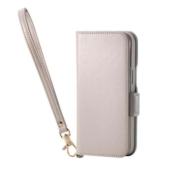 代引不可 エレコム iPhone 16e ケース レザー 手帳型 衝撃吸収 ハンドストラップ付 グレージュ