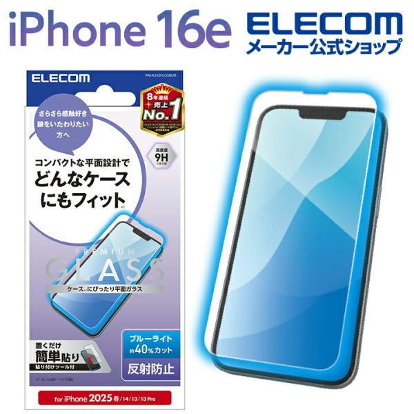 iPhone 16e 用 ガラスフィルム 反射防止 ブルーライトカット iPhone16e iPhone14/13/13pro ガラス 液晶 保護フィルム PM-A25SFLGGBLM エレコム 在庫処分