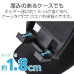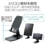 - ■広い面で端末を支える、高い安定性のスマートフォン・タブレット用スタンドです。端末と接する台座やアーム部分、底面の設計にこだわり、安定性を高めています。端末を設置したまま操作してもグラつきにくい仕様です。アーム部分はお好みに合わせて、角度と長さを自由に調節可能。約200gと軽量で、折りたたむと約1.8cmの薄さになるのでスタイリッシュなデザインです。持ち運びや収納も便利です。■広い面で端末を支える、高い安定性のスマートフォン・タブレット用スタンドです。 ■安定性を高めるために、端末と接する台座の面積を広く確保し、アーム部分を太くしています。さらに底面に鉄板を内蔵して重心を下にすることで、スタンド全体の傾きを防止します。 ■台座とホルダー部の端末設置面、底面にはシリコン製の滑り止めが付いています。 ■アーム部分はお好みに合わせて、角度と長さを自由に調節できます。 ■ホルダー部は約1.8cmの幅があり、ケースを付けたままでも設置できます。 ■ホルダー部の中央が空いているので、充電ケーブルなどを接続したまま使用できます。 ■約200gと軽量で、折りたたむと約1.8cmの薄さになるので、持ち運びや収納に便利です。 ■約4.6〜8.3インチのスマートフォンやタブレット、NINTENDO SWITCH(TM)、NINTENDO SWITCH(TM)(有機ELモデル)、NINTENDO SWITCH Lite(TM)に対応しています。 ■自社環境認定基準を1つ以上満たし、『THINK ECOLOGY』マークを表示した製品です。 ■環境保全に取り組み、製品の包装容器が紙・ダンボール・ポリ袋のみで構成されている製品です。■材質:本体:ABS、シリコン■外形寸法:本体(収納時):幅約70mm×奥行約18mm×高さ約118mm■重量:約200g■カラー:ブラック■対応機種:約4.6〜8.3インチのスマートフォンやタブレット(W約195.4mm×D約6.3mm×H約134.8mmまで)、NINTENDO SWITCH(TM)、NINTENDO SWITCH(TM)(有機ELモデル)、NINTENDO SWITCH Lite(TM)■角度調節:○エレコムダイレクトショップ