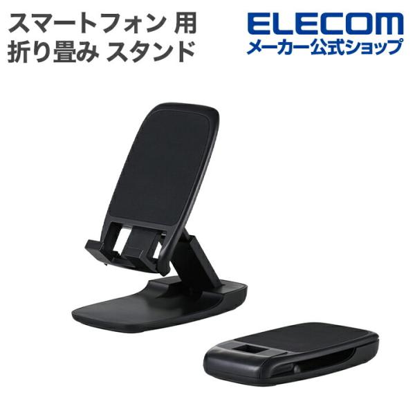 エレコム スマートフォン 用 スタンド 樹脂製 薄型 折り畳み コンパクト スタンド 持ち運び 無段階調整 ブラック PWDSCHAMBK