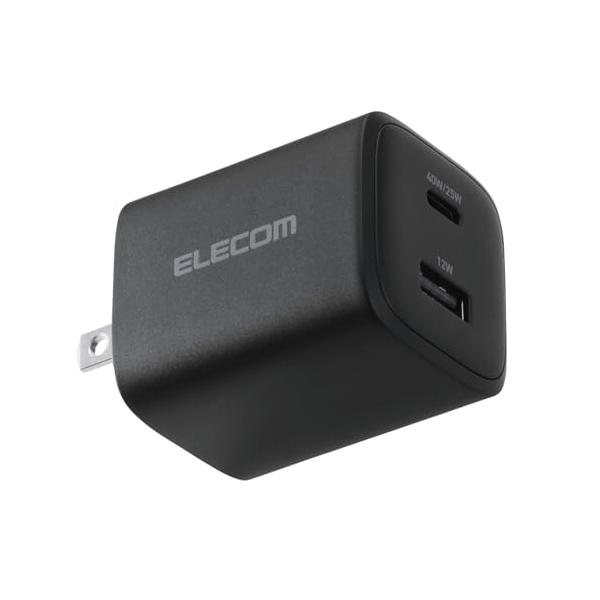 エレコム 充電器 40W 2ポート Type-C USB-A USB PD対応 PPS対応 GaN II採用 折りたたみ式プラグ ブラック EC