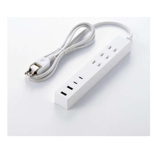 - エレコム T-U08-3A2C215WH 延長コード 電源タップ USB タップ 1.5m コンセント 3口 Type-C ×2 USB-A ×2 PD 20W 雷ガード ホワイト 発売日:2025年7月12日●ACアダプターなしで複数台のデバイスを、これ1台で充電可能。3つのAC差込口、2つのUSB-Aポート、2つのUSB Type-C(TM)ポートが一体になったUSBタップです。最大7台のデバイスを接続でき、コンセントの少ない場所で活躍します。熱硬化性樹脂二重構造やトラッキング防止を備え、発熱・火災を防ぐ安心設計です。●ACタップとUSBポートが一体になった、スマートフォンやタブレットなどを充電できるコード付きUSBタップです。ACアダプターなどを別途用意することなく、本製品1つで充電できます。●USB-Aポート×2、USB Type-C(TM)ポート×2を搭載。USB Type-Cポートからは最大20Wでの充電が可能です。●幅が約33mmのスリム形状なので、机の上など狭い場所に設置しやすく、遠くにあるコンセントやUSB充電器を手元に置くことができます。●USB-Aポートには接続機器を自動で見分け、適した出力で充電する「おまかせ充電」機能を搭載しています。●差込口には、未使用時にホコリの侵入を防止する「ホコリ防止シャッター」を装備しています。●本体筐体には高い難燃性を備えたPC樹脂、差込口周りには熱硬化性樹脂(ユリア樹脂)を用いた二重構造で、万が一の発熱の際に融解しにくく、電気火災の防止に有効です。●サージ電流耐量2750A/5回、2500A/10回、制限電圧775Vmax(25A 8/20μs)の素子(バリスタ)を搭載しており、誘導雷による雷サージを吸収して接続機器を保護します。●※直撃雷や、誘導雷であっても素子の許容値を超える雷サージが発生した場合、接続機器を保護できない場合があります。また、受けた電圧や回数により性能は劣化します。●差込口には海外製のスマートプラグなど、極性による栓刃幅の違いがある2ピンプラグの接続も可能です。 【仕様】差込口仕様:Aタイプ 2ピン差込口個数:3個口差込口間隔:27mm(差込口中心間寸法)プラグ仕様:Aタイプ 2ピンACコード長:約1.5mUSB端子形状:USB Type-C(TM)ポート×2、USB-Aポート×2AC側定格:14A 125V 1400WまでUSB側定格入力:AC100V-125V 50/60Hz 1AUSB側定格出力(1ポート使用時):USB Type-Cポート:USB Power Delivery 20W(5V/3A、9V/2.22)、USB-Aポート:12W(5V/2.4A)USB側定格出力(2ポート使用時):USB Type-Cポート+USB Type-Cポート:合計27W(5V/5.4A)(各USB Type-C 15W(5V/3A))、USB Type-Cポート+USB-Aポート:合計27W(5V/5.4A)(USB Type-C 15W(5V/3A)、USB-A 12W(5V/2.4A))、USB-Aポート+USB-Aポート:合計12W(5V/2.4A)(各USB-A 12W(5V/2.4A))USB側定格出力(3ポート使用時):USB Type-Cポート+USB Type-Cポート+USB-Aポート:合計27W(5V/5.4A)(各USB Type-C 15W(5V/3A)、USB-A 12W(5V/2.4A))、USB Type-Cポート+USB-Aポート+USB-Aポート:合計27W(5V/5.4A)(USB Type-C 15W(5V/3A)、各USB-A 12W(5V/2.4A))USB側定格出力(4ポート使用時):USB Type-Cポート+USB Type-Cポート+USB-Aポート+USB-Aポート:合計27W(5V/5.4A)(各USB Type-C 15W(5V/3A)、各USB-A 12W(5V/2.4A))極性対応:△(差込口は対応、プラグは目印のみ)スイッチ:×雷ガード:○ホコリシャッター:○(AC差込口のみ)抜け止め機能:×通電表示ランプ:×