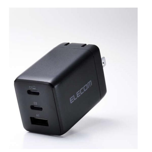 - 【返品種別A】□「返品種別」について詳しくはこちら□2025年05月 発売メーカー保証期間 1年◆ノートパソコン・スマホ・ワイヤレスイヤホンを3台同時充電OK! コンパクトながらUSB-AとUSB Type-C(TM)、いずれのケーブルも接続できるAC充電器。◆用途に合わせて接続先を使い分けられる、組み合わせて同時に充電ができるAC充電器3つの出力ポートを搭載。用途に合わせて接続先を使い分けられるから、ノートパソコンやスマートフォン、タブレット、ワイヤレスイヤホンなどを組み合わせて同時に充電できるAC充電器です。◆GaN(窒化ガリウム)II により高出力ながらコンパクトサイズGaN II(窒化ガリウム)を採用し、高出力ながらコンパクトサイズを実現。プラグ部分も折り畳むことができるため、バッグの中でもスペースを取らず、ビジネスでの外出やリモートワーク、出張、旅行など持ち運びにも便利です。◆各ポート出力(ポート・ワット数)USB Type-Cポートへの1ポート接続時は、USB Power Delivery 67Wを出力。ノートパソコンを十分な速度で充電できます。2ポート同時接続時は10W〜45W、3ポート同時接続時は10W〜40Wでの出力が可能です。スマートフォンやタブレット、ワイヤレスイヤホン、電子タバコなどのデバイスを同時に充電できます。◆高い互換性本製品はUSB-IFのテストと同等のテストをエレコム社独自で実施し、USB Power Delivery対応製品との高い互換性が保たれています。◆耐トラッキング性の要求事項を満たしたコンセントプラグ電気用品安全法の耐トラッキング性の要求事項を満たしたコンセントプラグを採用しています。◆温度保護機能より、さらなる安全性を実現Thermal Protectionを搭載し、製品温度の上昇を24時間監視・制御。自動で出力をコントロールし、お使いの機器を守ります。◆電気用品安全法(PSE)認証品電気用品安全法(PSE)認証品です。また、当社独自のテストを実施した、高い安全性が確認された製品になります。◆USB-C - MagSafe 3ケーブルも使用可能MacBook付属のUSB-C - MagSafe 3ケーブルも使用可能。MacBookの充電をスムーズに行えます。◆USB Power Delivery規格、PPS規格に対応USB Power DeliveryおよびPPS規格に対応。機器に応じて電圧、電流が変化するためスマートフォンやタブレットはもちろん、Windowsノートパソコンも幅広い機種を充電できます。■ 仕 様 ■対応機種:各USB Type-C(TM)ポートからUSB Power Delivery 67WおよびPPS 55WまたはUSB-Aポートから12Wの規格内で充電可能なノートパソコン、スマートフォンなどの機器。2ポート以上同時接続時、合計最大65Wまでの出力で充電・給電可能な機器とその組み合わせコネクター形状:USB Type-Cポート×2、USB-Aポート×1定格入力電圧:AC100〜240V、50/60Hz定格入力電流:2A定格出力電力(単独接続時):USB Type-C1/C2ポート:最大出力67WPPS最大出力55W、USB-A1ポート:最大出力12W定格出力電力(2ポート同時接続時(1)):USB Type-C1+USB Type-C2ポート:合計最大出力65WUSB Type-C1ポート最大出力45W、PPS最大出力33W、USB Type-C2ポート最大出力20W、定格出力電力(2ポート同時接続時(2)):USB Type-C1+USB-A1 ポート:合計最大出力57WUSB Type-C1ポート最大出力45W、PPS最大出力33W、USB-A1ポート最大出力12W、USB Type-C2+USB-A1 ポート:合計最大出力20W、USB Type-C2ポート最大出力10W、USB-A1ポート最大出力10W定格出力電力(3ポート同時接続時):合計最大出力60W、USB Type-C1ポート最大出力40W、PPS最大出力33W、USB Type-C2ポート最大出力10W、USB-A1ポート最大出力10W定格出力電圧(単独接続時):USB Type-C1/C2ポート:5V/9V/15V/20V、PPS出力3.3〜11V、USB-A1ポート:5V定格出力電圧(2ポート同時接続時(1)):[USB Type-C1+USB Type-C2ポート接続時]・・・USB Type-C1ポート:5V/9V/15V/20V、PPS出力3.3〜11V、USB Type-C2ポート:5V/9V定格出力電圧(2ポート同時接続時(2)):[USB Type-C1+USB-A1ポート接続時]・・・USB Type-C1ポート:5V/9V/15V/20V、PPS出力3.3〜11V、USB-A1ポート:5V[USB Type-C2+USB-A1ポート接続時]・・・USB Type-C2ポート:5V、USB-A1ポート:5V定格出力電圧(3ポート同時接続時):USB Type-C1ポート:5V/9V/15V/20VPPS出力3.3〜11V、USB Type-C2ポート:5V、USB-A1ポート:5V定格出力電流(単独接続時):USB Type-C1/C2ポート:5V/9V/15V時3A・20V時3.35APPS出力3.3〜11V時5A、USB-A1ポート:5V時2.4A定格出力電流(2ポート同時接続時(1)):[USB Type-C1+USB Type-C2ポート接続時]・・・USB Type-C1ポート:5V/9V/15V時3A・20V時2.25A、PPS出力3.3〜11V時3A、USB Type-C2ポート:5V時3A・9V時2.22A定格出力電流(2ポート同時接続時(2)):[USB Type-C1+USB-A1ポート接続時]・・・USB Type-C1ポート:5V/9V/15V時3A・20V時2.25A、PPS出力3.3〜11V時3A、USB-A1ポート:5V時2.4A[USB Type-C2+USB-A1ポート接続時]USB Type-C2ポート:5V時2A、USB-A1ポート:5V時2A定格出力電流(3ポート同時接続時):USB Type-C1ポート:5V/9V時3A・15V時2.67A・20V時2APPS出力3.3〜11V時3A、USB Type-C2ポート:5V時2A、USB-A1ポート:5V時2A外形寸法:幅約56.5mm×奥行約31.5mm×高さ約38mm重量:約105gコンセントプラグ仕様:90度スイング構造使用温度:0℃〜25℃法令:◇PSE 特定電気用品使用可能地域:日本[ACDCPD10367BK]スマートフォン関連/情報端末>スマートフォン関連アクセサリー>充電器>AC充電器