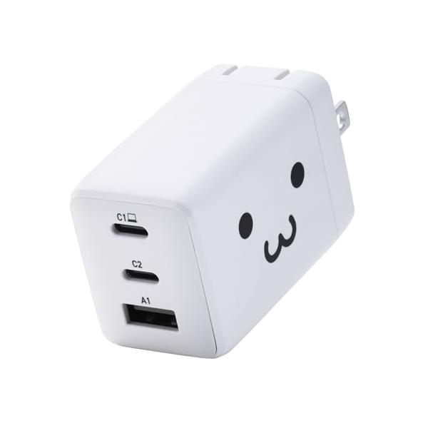 エレコム 充電器 合計65W 3ポート Type-C USB-A USB PD対応 スイング式プラグ採用 しろちゃん EC-AC10367WF
