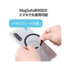 - 【返品種別A】□「返品種別」について詳しくはこちら□2025年05月 発売※対応機種をお確かめの上、ご購入下さい。◆磁石がつく場所に固定できる両面マグネットスタンド磁石がつく壁や家具にスマートフォンを固定できる、マグネットスタンドです。◆レシピ動画を見ながらの料理に両面マグネットで、キッチンの換気扇フードや冷蔵庫などにしっかり固定可能。レシピ動画を見ながら料理ができ、家事の効率がアップします。◆折り畳んでコンパクトに収納折り畳んでコンパクトに収納でき、かばんなどに入れてもかさばらず気軽に持ち運べます。◆車内でも使えるレザー調パッド付属車のダッシュボードに貼り付けられるレザー調のパッドが付属しています。◆縦向き・横向き、どんな角度でも固定縦向き・横向きはもちろん、どんな角度でもスマートフォンを固定できるので、さまざまなシーンで活躍します。◆角度調節ができる角度調節も自由にでき、動画鑑賞も快適。好みの位置に合わせられるため、長時間の使用でも疲れにくいです。◆メタルプレート付属、MagSafe非対応スマホにもMagSafe対応スマホケースや付属のメタルプレートと併用することで、MagSafe非対応のスマートフォンでも使用可能です。※ケースの材質、厚みなどによって対応できない場合がありますのでご了承ください。◆インテリアに馴染むマットな質感マットな質感と落ち着いた色合いで、インテリアに馴染みます。■ 仕 様 ■対応機種:MagSafe対応のiPhone ※2025年05月現在セット内容:両面マグネットスタンド×1、メタルプレート×1、マグネットパッド×1材質:マグネットスタンド:亜鉛合金・磁石、メタルプレート:鉄、マグネットパッド:合成皮革外形寸法:マグネットスタンド:幅約60mm×厚み約16mm×高さ約60mm(折り畳み時)重量:約85gカラー:ブラック[PDSCMPWM01BK]スマートフォン関連/情報端末>スマートフォン関連アクセサリー>スタンド・ホルダー>スタンド