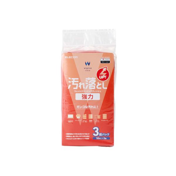 エレコム WC-JU150H3 ウェットティッシュ クリーナー 重曹電解水 重曹電解水 OA機器対応 50枚入り 3個パック