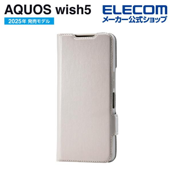 AQUOS wish5 用 ソフトレザーケース 磁石付 耐衝撃 ステッチ カード収納 AQUOSwish5 ソフトレザー ケース グレージュ PM-S251PLFY3GB エレコム 在庫処分
