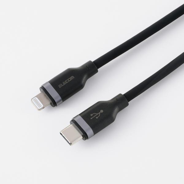 エレコム Type-C to Lightning ケーブル USB USB2.0 60W シリコン 1.0m USB Power Delivery対応 シリコン ブラック ELECOM MPA-CLECSS10BK
